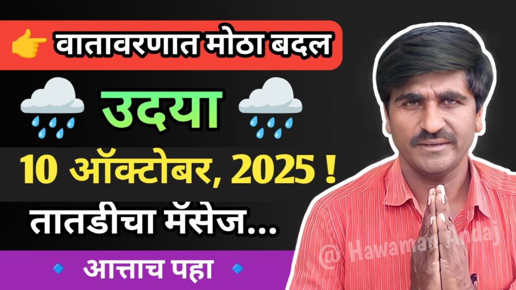 आज आहे ९ ऑक्टोबर २०२५. १६ ऑक्टोबर पर्यंत पाऊस येणार नाही, हि शेतकऱ्यांसाठी आनंदाची बातमी. राज्यामध्ये 16,17 ऑक्टोबर दरम्यान थोडं पावसाचं वातावरण तयार होणार आहे, परंतु संपूर्ण महाराष्ट्रात नसणार, मोठा पाऊस नसणार, फक्त आंध्रप्रदेश,तामिळनाडू,कर्नाटक,तेलंगणा या राज्यामध्ये पाऊस पडणार आहे, त्यामुळे सीमालगतचे जिल्हे यवतमाळ,लातूर,नांदेड.हिंगोली,परभणी,धाराशिव,सोलापूर,सांगली,सातारा या जिल्ह्यामध्ये थोडं वातावरण जास्त राहणार. राज्यामध्ये यावर्षी दिपालीत पाऊस येणार आहे, […]